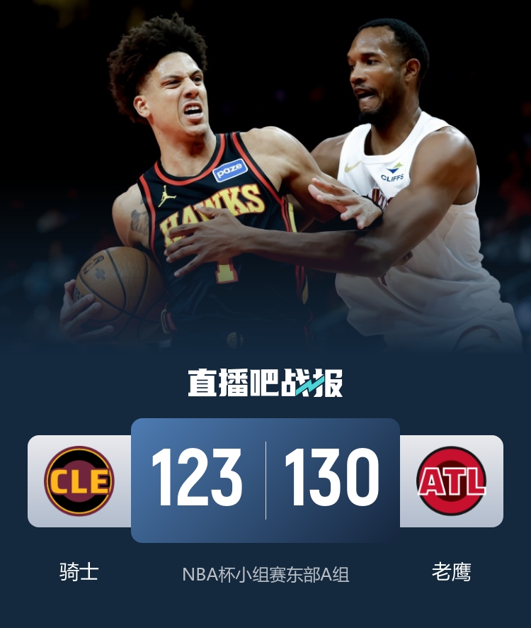 11月29日讯 NBA杯小组赛继续进行,老鹰坐镇主场迎战骑士队,此前老鹰11胜8负排名东部第六,骑士则是12胜7负位列东部第五,此役波尔津吉斯等人缺阵。